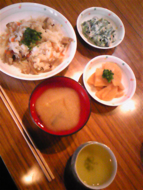 さて、嫁さんは味噌製作後、山菜たっぷりのご飯を頂いたのこと