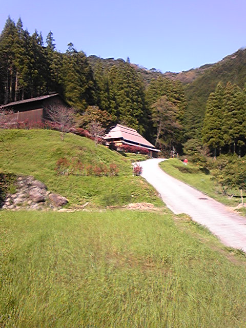 里山の古民家は山の中にあります。杉並木を通りぬけ