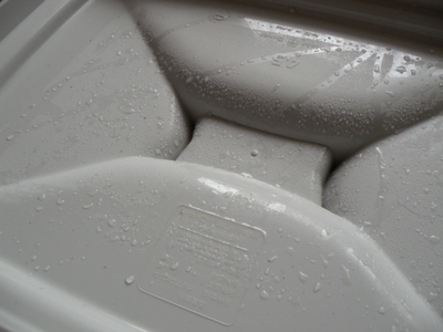 ご覧の通り、フタにびっしりと水滴が付着。これを横に倒すとダーと水が流れる場合があります。