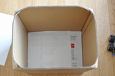 このダンボールはA4のコピー用紙がぴったりだったので楽。