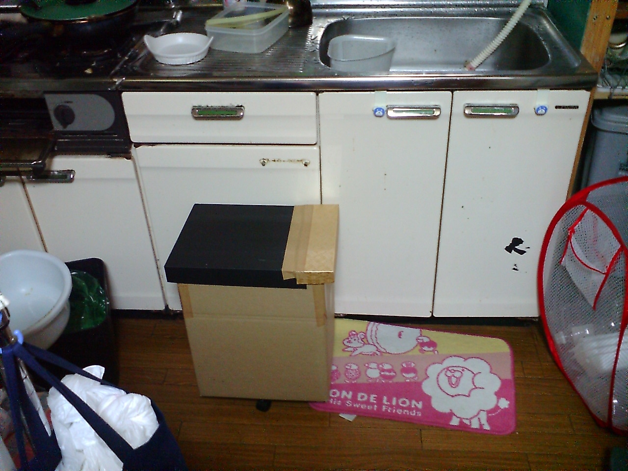 というわけで、うちの狭い台所でも極力邪魔にならない?ダンボールコンポストを製作しました。