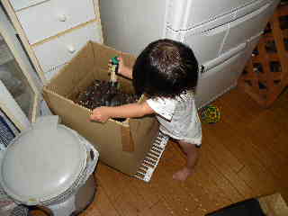 以前の生ゴミだらけのゴミ箱では、子供には絶対触らせたくないのですが、コンポストならば問題ありませんね。