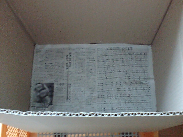 新聞紙を底に敷きます。これはダンボールでもOKですが、新聞紙が楽です。