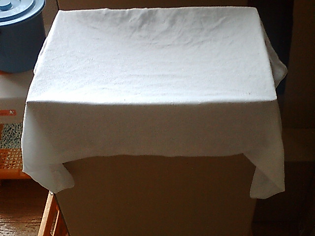 最後に、100円ショップで買った洗濯ネットをダンボールの上にかぶせ完了。
