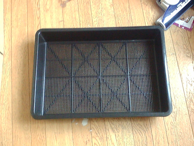 そこで、近くのDIYにいき、育苗箱を250円程度で購入し、これをひっくり返して、使用しています。