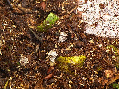 ですので、ミカンの皮などは分解されずにカラカラの皮になっている状態です。